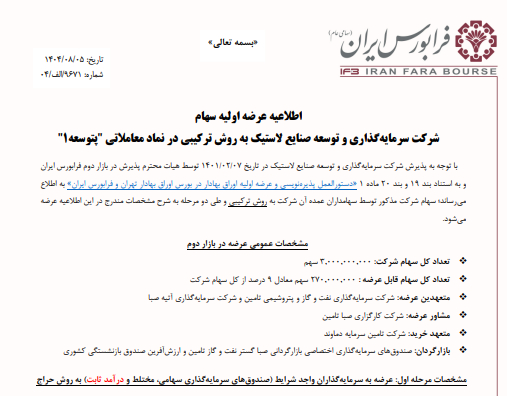 اخبار تاپیکو اطلاعیه عرضه اولیه سهام شرکت سرمایهگذاری و توسعه صنایع لاستیک منتشر شد+جزئیات کامل ۱۴۰۴-۰۸-۰۵