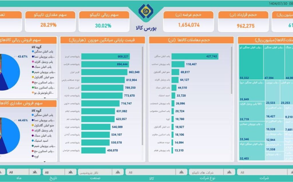 به گزارش پایگاه اطلاع رسانی تاپیکو، در راستای اجرای برنامههای تحول دیجیتال و توسعه هوش تجاری، هلدینگ نفت و گاز و پتروشیمی تأمین(تاپیکو) با بهرهگیری از دادههای رسمی بورس کالای ایران، دو سامانه پیشرفته تحلیل و گزارشسازی را طراحی و راهاندازی کرد که گامی مؤثر در جهت شفافیت و تصمیمسازی دادهمحور در صنعت پتروشیمی کشور است.
